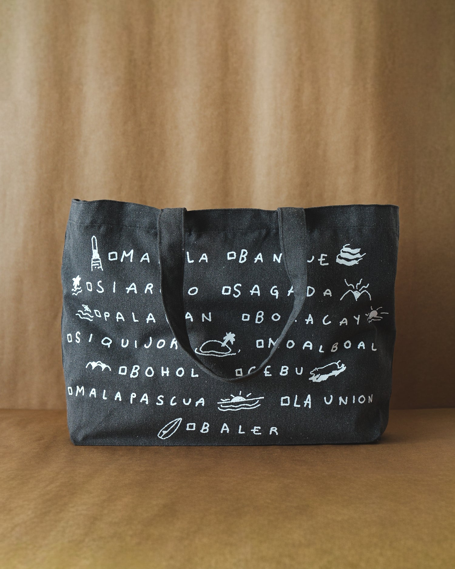 Inspired by a personal list of destinations in the Philippines, this drop is a starting point. Printed with island names, subtle icons, and check boxes, the tote is designed to be marked with a permanent marker. Check off places you’ve been, circle what’s next, or doodle along the way as memories happen.