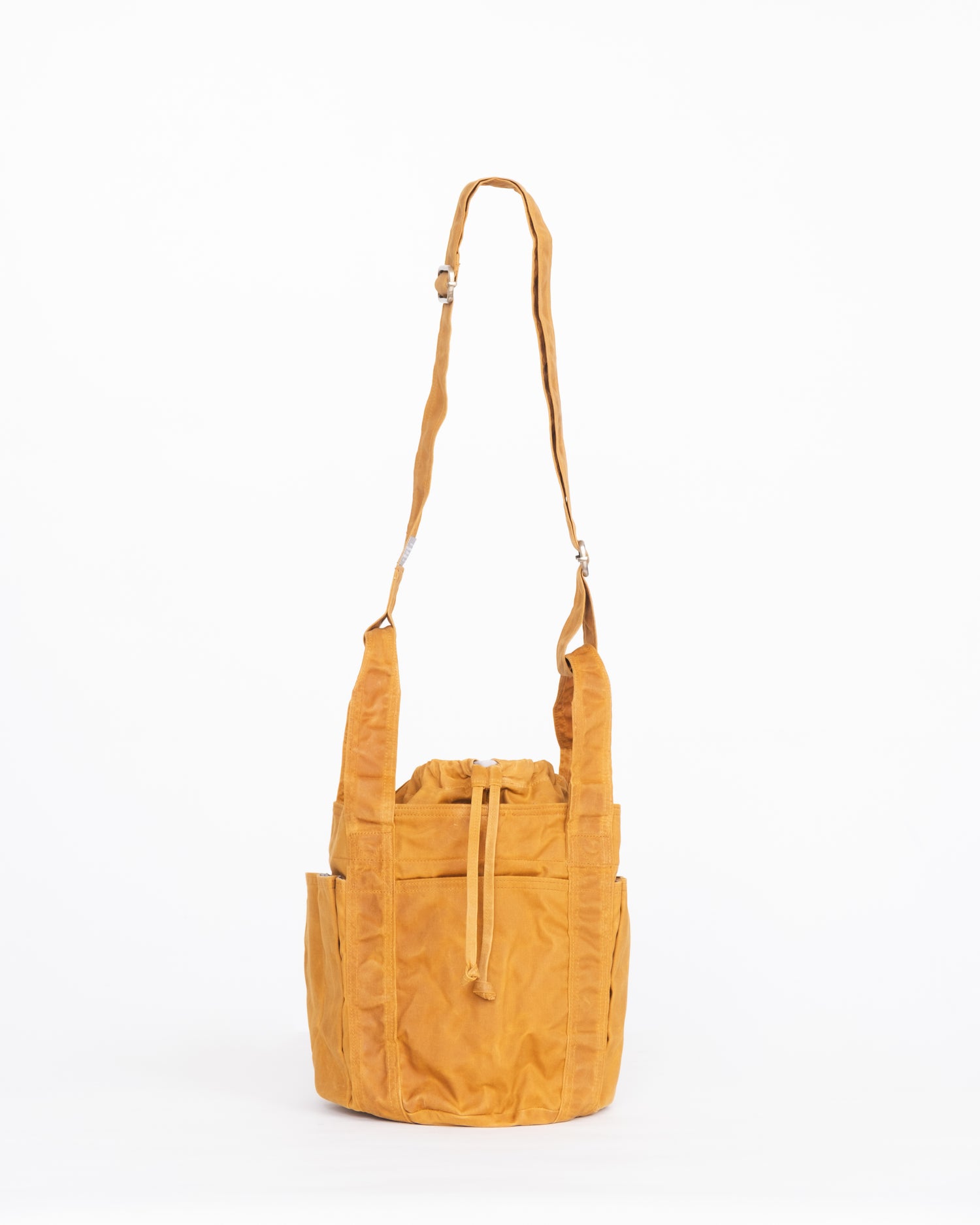 Featuring four exterior pockets, a spacious main compartment, and a drawstring closure, it keeps smaller items secure while remaining easy to access. Its structured form allows the bag to stand on its own, while a top handle and adjustable shoulder strap provide flexible carry throughout the day.