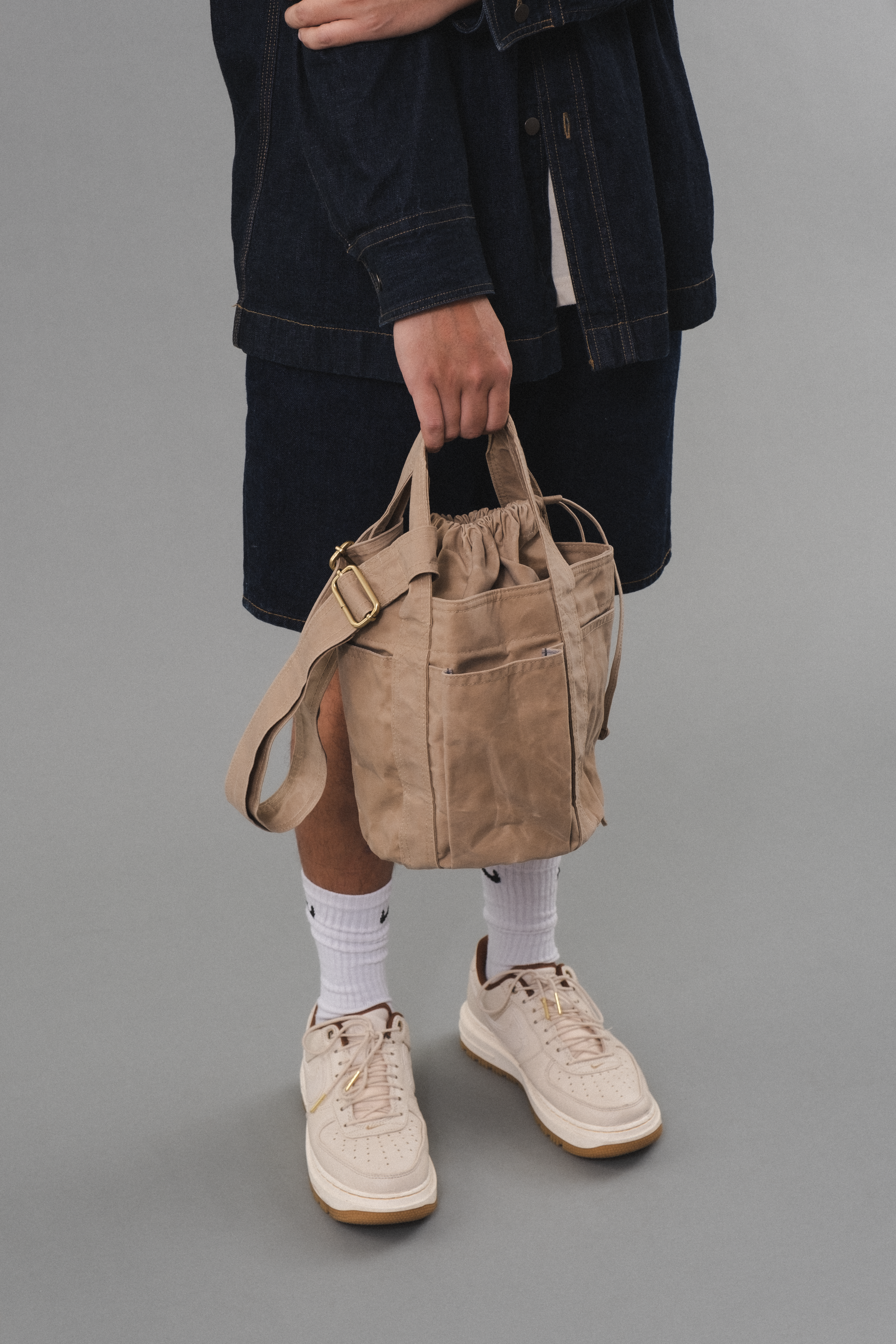 The Tool Bag is designed to fit all your everyday essentials with ease. It features a sturdy round base, four outer pockets for additional storage, and an adjustable handle-sling combo for versatile carrying options. Perfect for staying organised on the go!